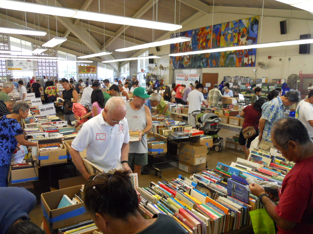 毎年マッキンレー高校で開催されるFriends of the Library of Hawaii主催のブックセールに行ってきました。Friends of the Library of Hawaiiは、1879年に設立された非営利団体で、ハワイ州立図書館への支援を目的としています。ブックセールで販売される本は、個人や会社また団体からの寄付、もしくは各図書館で使用した本で、販売で集まったお金は各図書館の運営資金として還元されます。