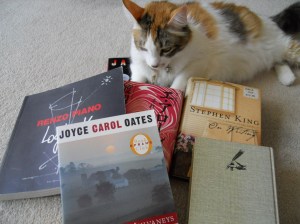 昨年のブックセールで買って、まだ読んでいない本もあるというのに、今年も6冊も買ってしまいました。まあ、そのうちの2冊はプレゼント用、1冊は参考図書なので、実際には3冊が読書用です。写真撮影しようと本を並べると、本好きのPUAが、本の上に座り込んでしまいました。